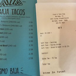 Fuzzy’s Taco Shop Menu